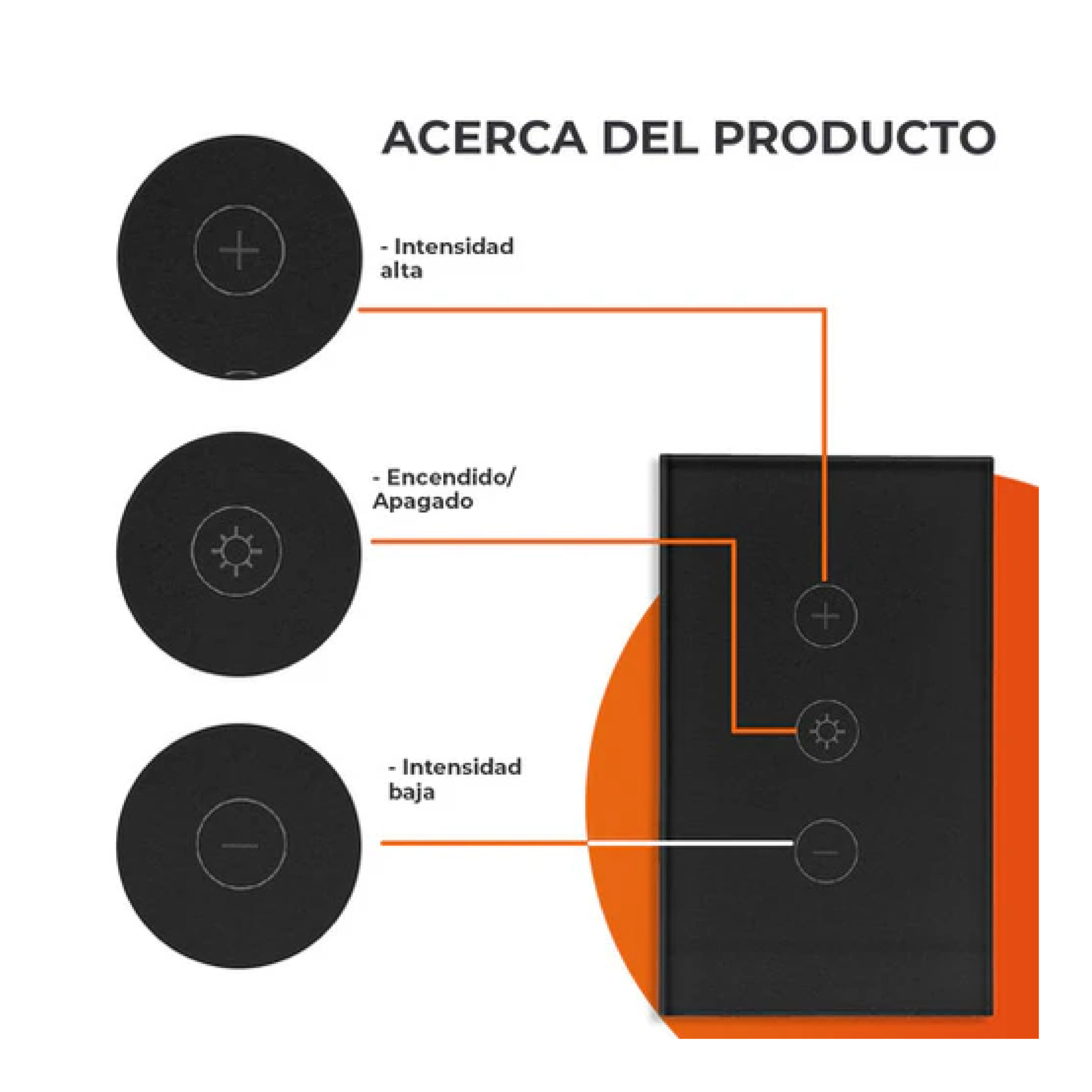 INTERRUPTOR DE LUZ INTELIGENTE CREATOR IV, 3 BOTONES TÁCTILES, WI-FI, NGRO