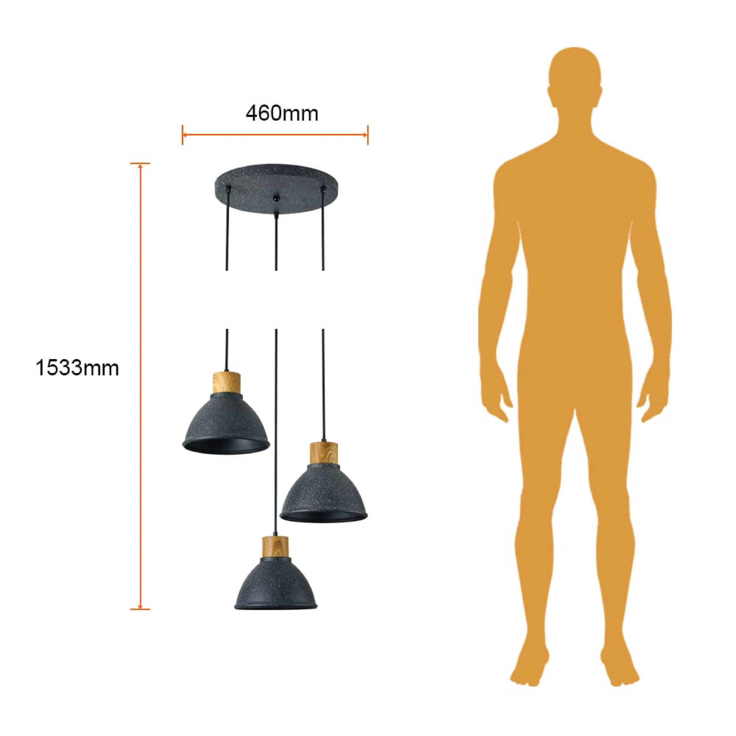LAMP-COLG. GLOAS II 60W MAX, 100-240V, BASE E27X3 NGRO 1/2 cantidad